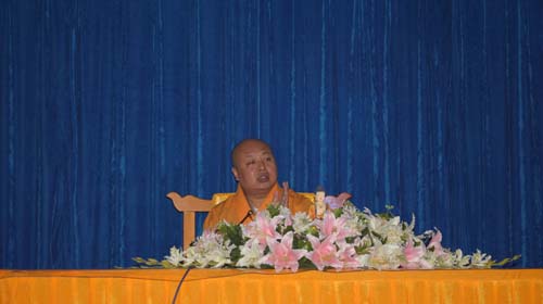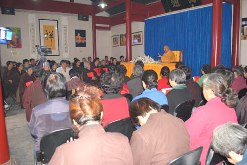 为什么我们在这一品里面要单单列出一章,法师功德品其实这是在赞僧,为什么呢?僧住则法住!正法住世与否,如果没有僧住,法也不住了,末法时代的现象就是没有三宝。僧宝没有了,佛法就没有了,因为妙法莲华经,是佛最后的交接。僧住则法住,来提醒大家,现在又很多人在学弟子规,你们谁能站出来说我就是儒士?没有一个人。为什么?你代表不了。相同的,我们哪一个居士,尽管修行的再好,有没有人敢说我就代表佛法僧三宝?所以这里面单单提出,僧住则法住。一千里之内如果没有法师,你可以在在佛前自誓三皈依。受菩萨戒也是,千里之内有法师不可以自誓受。怎么自受呢?一直在佛前礼拜最后看见佛来亲自摸顶了这算得戒,如果没有得到佛的亲自摸顶,这个受戒是没有戒体的,但是要是在法师前面受戒不需要讲“好像”,所以法师的功德是不可思议的,自誓受戒要讲“好像”,在法师前受戒不需要讲“好像”。因为法师代表的是佛法僧三宝,在中国佛学院就读的普能法师,他的祖母就是佛教徒,父母都是佛教徒,他带出家人回家后他的祖母带着父母亲一定要礼拜,请佛住世、请法住世啊!保定对出家人的要求太高了,他们有逐步上升的一个过程,出家人不是万能的,大家有没有体会过出家人的难处啊?永远都体会不到。一个人要出家,能走出这一步是需要多大的勇气,父母的反对,亲戚朋友邻居的反对,社会上不信佛的人的冷言冷语。各位要不要发心出家啊?十年有人吗?五年?一年?半年?一个月?十天?如果这个事情容易的话,十天可不可以啊?我已经出家20年了,十天你们都不愿意啊! 我没受过挫折与打击,就是听一个老和尚讲出家好,我就跟着出家了,只是向往出家人的生活,向往佛法的道理。我们的信徒皈依三宝,又总是说出家人的不是,这种言谈举止带到周围谁还愿意出家?我们可以对出家人期望,但不要要求太高啊。我们要以无量的方便赞叹出家人的功德,不管出家人如何做,我们要不停地赞叹。大家也要互相赞叹鼓励,菩提路长啊,需要别人的扶持啊,不要互相诽谤,听到是非后,要转化为功德,叫修行。把自己的本分事做好就是修行,不要换东换西,往生的信念不变就是一心不乱。六祖大师说的好,心平何劳持戒,行直何须修禅!心平、行直就是禅定。普及佛法是我的信仰,不管别人怎么说我还是要持之以恒去做,我有则改之无则加勉,这样福报也会增长,我也希望大家福报增长,使我们的盐碱地长出菩提之苗!