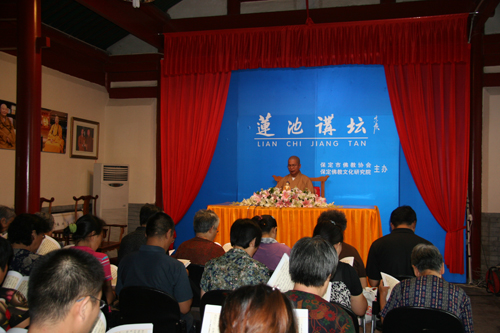 保定佛教资讯网讯:2010年7月11日上午九点,保定市“莲池讲坛”总期82期,继续邀请观音寺住持真源法师为大家讲解《大方广佛华严经——普贤行愿品》第十一讲。